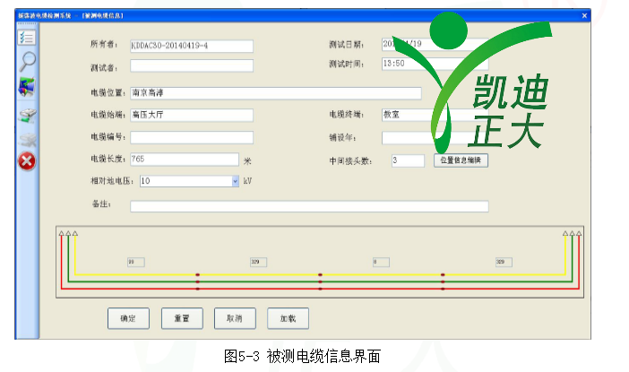 啟動時,被測電纜信息默認加載最近一次試驗的電纜信息。