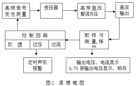 凱迪正大系列直流高壓發(fā)生器應(yīng)用最新電力電子技術(shù),采用高新的PWM調(diào)制技術(shù)及大功率MOSFET器件,通過中頻倍壓整流而成;該發(fā)生器具有紋波系數(shù)小、輸出穩(wěn)定可靠,體積小、重量輕的特點,且具有可靠、靈敏的內(nèi)部保護(hù)功能,其原理框圖如圖所示。