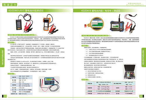 KDZD801/815蓄電池內(nèi)阻測(cè)試儀抗干擾能力強(qiáng),在嚴(yán)重干擾條件下,液晶屏最后一位數(shù)據(jù)能穩(wěn)定在±1個(gè)字范圍內(nèi),讀數(shù)穩(wěn)定,重復(fù)性好,采用最高新的液晶觸摸操作方式,人性化操作界面,外形美觀,體積小,重量輕,操作簡(jiǎn)單,讀數(shù)穩(wěn)定,重復(fù)性好。采用最高新液晶觸摸屏操作方式,人性化操作界面,外形美觀,體積小,重量輕,操作簡(jiǎn)單,可以快速完成現(xiàn)場(chǎng)測(cè)量;存儲(chǔ)容量大,能夠在表內(nèi)存儲(chǔ)5200節(jié)蓄電池的測(cè)試數(shù)據(jù),并配備專用的計(jì)算機(jī)管理軟件,實(shí)現(xiàn)數(shù)據(jù)的存儲(chǔ),同一塊電池不同時(shí)期技術(shù)狀態(tài)的對(duì)比,電池劣化趨勢(shì)分析等,從而實(shí)現(xiàn)可預(yù)見性地及時(shí)對(duì)蓄電池進(jìn)行修復(fù)或者更換,避免發(fā)生電源斷電故障,智能化,數(shù)字化,全中文操作菜單,準(zhǔn)確測(cè)量,操作簡(jiǎn)單;重量不超過0.5kg,手持式與腰胯式雙重設(shè)計(jì),單人操作,全程自動(dòng)測(cè)量,滿足各種電池內(nèi)阻檢測(cè)標(biāo)準(zhǔn),須收錄齊全的蓄電池內(nèi)阻參數(shù)數(shù)據(jù)庫(kù),并能在儀表上進(jìn)行結(jié)論性查詢和分析,也可將蓄電池測(cè)試數(shù)據(jù)用U盤導(dǎo)出到計(jì)算機(jī)軟件中生成圖表和曲線進(jìn)行分析;測(cè)試報(bào)表可以方便的導(dǎo)入EXCEL和Word文件,并以指定的格式打印成報(bào)告,方便管理,以減少工作量,四端多用途測(cè)試夾,集測(cè)試夾,探針等功能于一體,能夠適應(yīng)98%以上的電池連接安裝方式和電池連接安裝方式和電池極柱形式,在強(qiáng)紋波干擾情況下,可準(zhǔn)確在線測(cè)試蓄電池電壓,內(nèi)阻。可按照用戶需求定制更新儀表程序,最高新的交流放電測(cè)試方法;設(shè)計(jì)小巧,重量輕,方便使用者攜帶及操作,儀器功能,單節(jié)電池測(cè)量,成組電池測(cè)量,示波器,采用按鍵作操作也可以采用觸摸屏操作,可任意選擇測(cè)試夾,測(cè)試針,測(cè)試鉗。