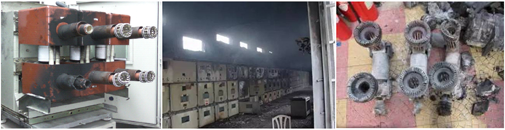 由于開關(guān)柜母線室是連通的,當一個間隔故障時,電弧侵犯臨柜,往往造成“火燒連營” 事故,致使多面開關(guān)柜燒毀。